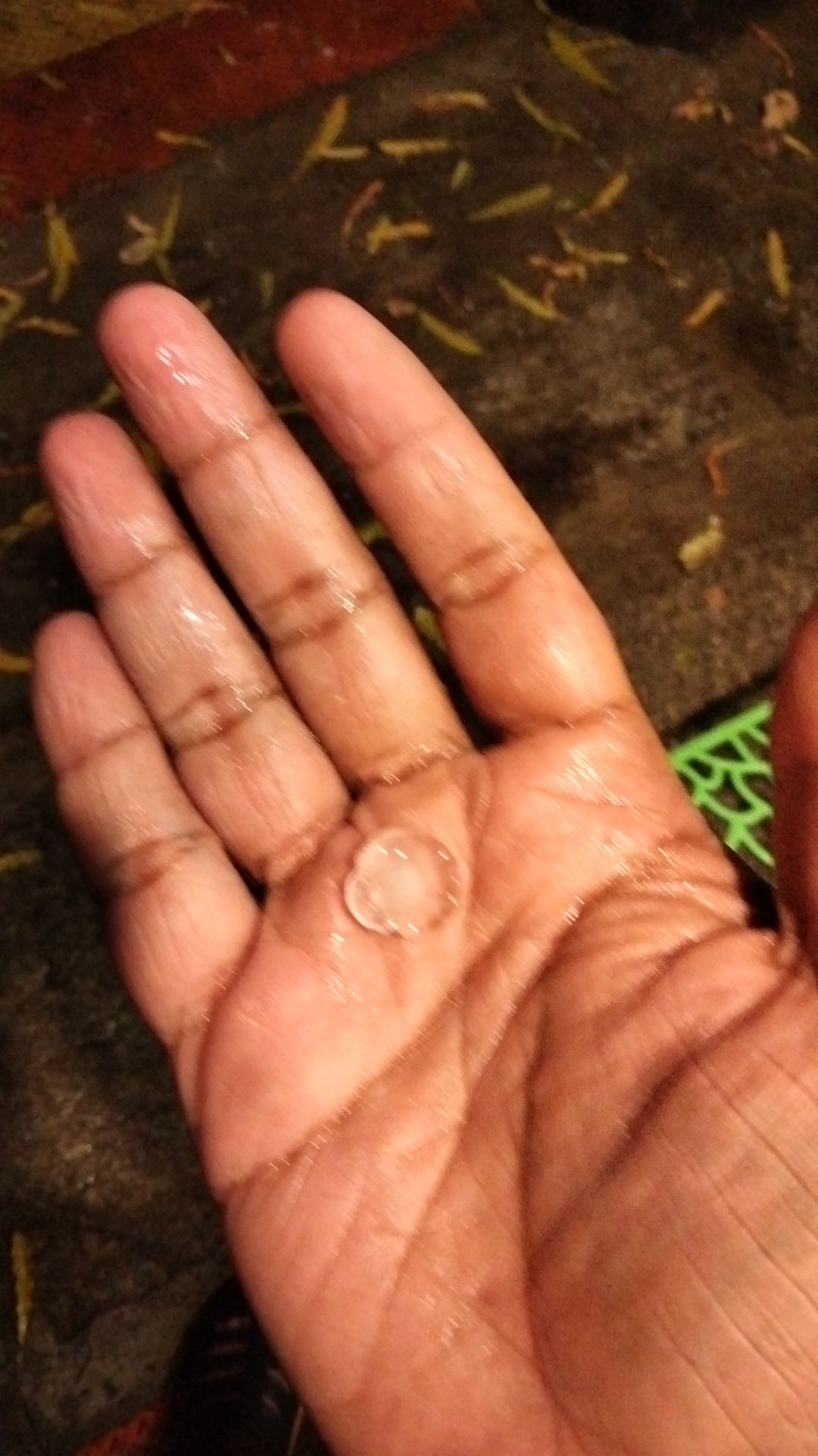 I paid ₹90 and sat on one of the chairs outside waiting for the rain to stop. I sent a video of the ice — which was still falling — to Shan Geoites. That’s the Telegram group with Savi, Akash, Swathi, and I. The group is named after the YouTuber who taught us how to make kadala curry.